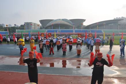 9月27日上午,大连理工大学操场彩旗飘飘,乐声阵阵。8点正,在激昂而富有韵律的运动员进行曲中, 我校“2014年迎国庆秋季田径运动会”拉开了帷幕。校长王跃进、党总支副书记郑秋文、副校长李岩、副校长杨爽等学校领导和全校师生及部分家长朋友一起参加了本次体育盛会。