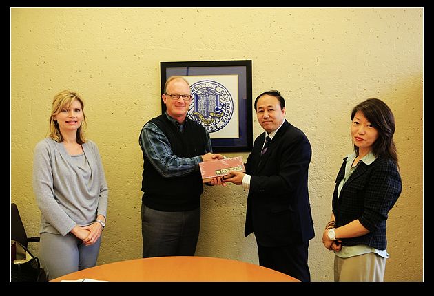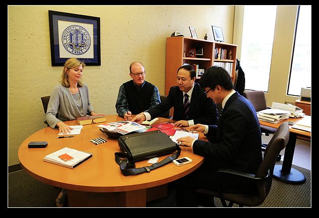 图1 与加州大学欧文分校副校长兼国际部主任Brent Yunet博士(左二)会谈中
