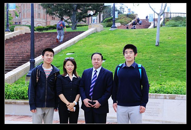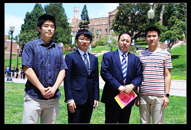 图7 王校长、郭嘉助理在加州大学洛杉矶分校与胡永成和刘建哲在一起