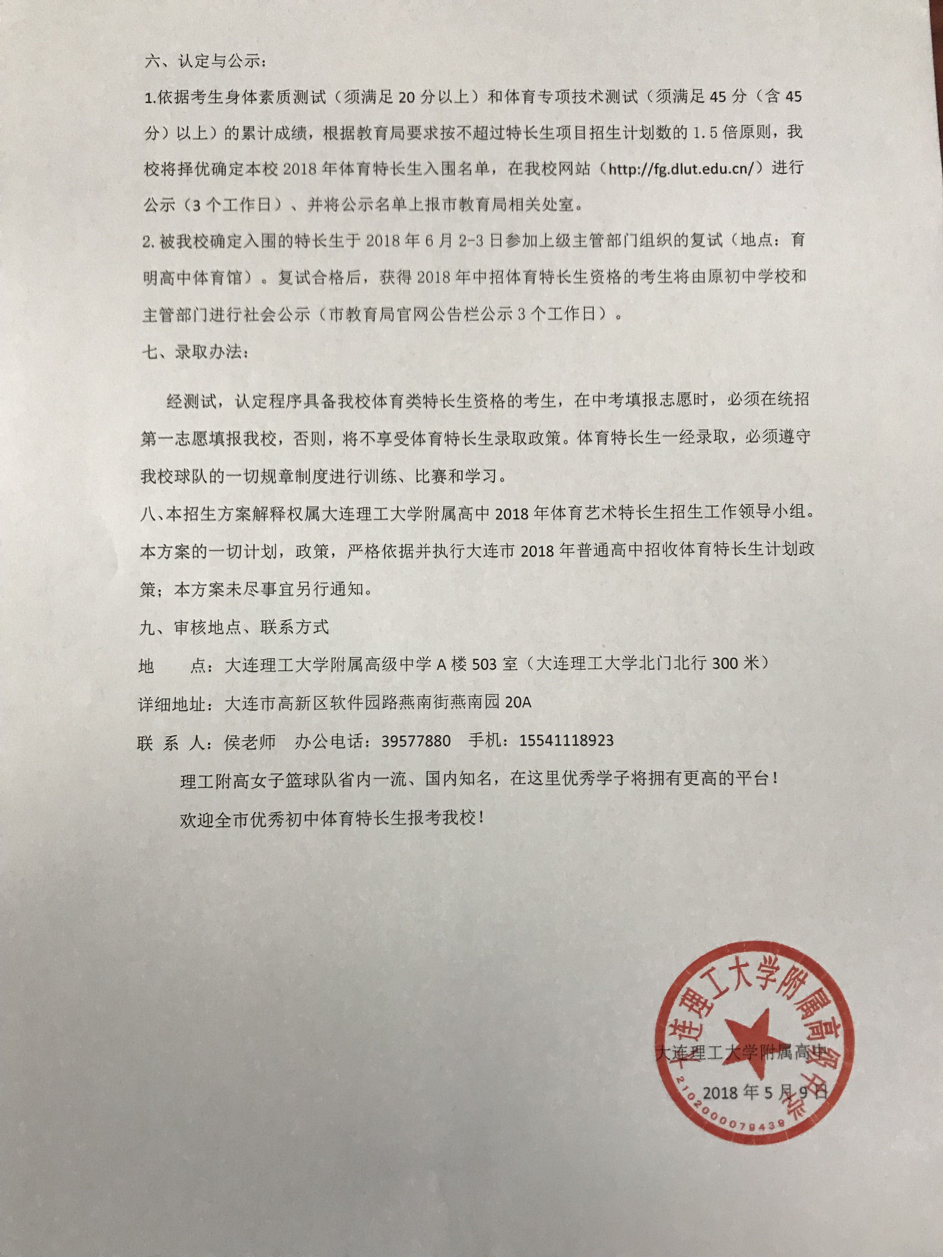 附件【大连理工大学附属高中2018年体育特长生招生方案.doc已下载