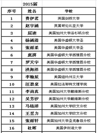 考入理工附高国际班的学生,学习期满达到毕业要求并参加辽宁省高中学业考试成绩合格,将颁发辽宁省普通高中毕业证书。依据学生外语成绩,申请世界知名高校。2016届57名毕业生,依据U.S.NEW官方发布的排行榜,依据QS世界大学排名统计,考入美国、澳洲、英国、加拿大、日本等国家大学的同学,有17人录取进入世界排名前30强大学,有33人录取进入世界排名前50名大学,有51人录取进入世界前100名大学。