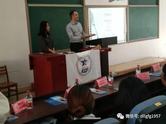 亚利桑那州立大学(Arizona State University)招生官Daniel Gerbatch,博伊西州立大学(Boise State University)代表黄女士为国际班同学们分享了美国大学的生活和校园文化,在轻松活泼的游戏互动中,同学们对美国大学校园学习生活有了更立体的认识。麻省医药大学(Massachusetts College of Pharmacy & Health Science)代表Kevin Liu为同学们分享了如何选择大学专业,并分析了未来的就业趋势。
