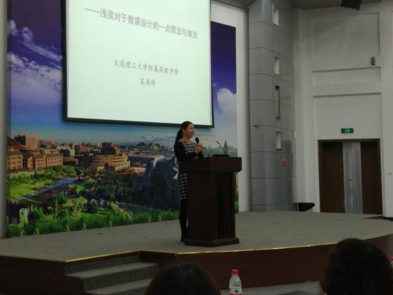 在东软举办的颁奖会上,我校部分获奖教师代表上台领奖;吴尚玲老师作为参赛教师代表在会上作了题目为《积累 创新 细节 合作——浅谈对于微课设计的一点想法与做法》的交流发言,受到与会领导和教师的一致好评。